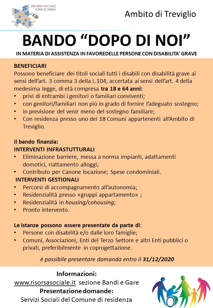 - Bando titoli sociali DOPO DI NOI - Ambito di Treviglio - 2020;