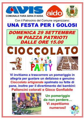 AVIS E AIDO VI INVITANO A TRASCORRERE UN POMERIGGIO IN ALLEGRIA PER GUSTARE UN DELIZIOSO E GENUINO CIOCCOLATO ARTIGIANALE SU FETTE DI PANE!!!!