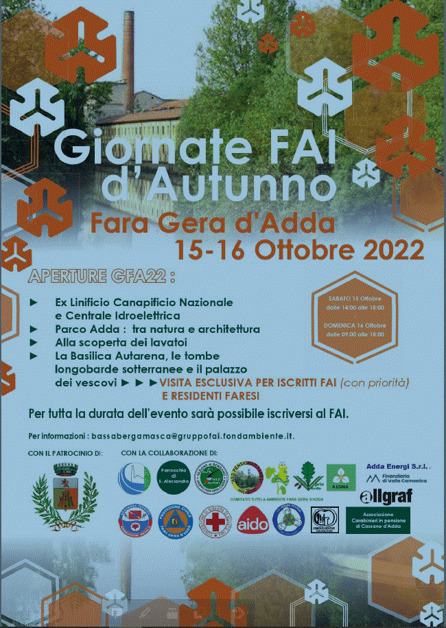 Il Fai bassa bergamasca, ha scelto il nostro comune per la Giornata d'autunno ritenendo importanti alcuni siti e l'ambiente naturale.