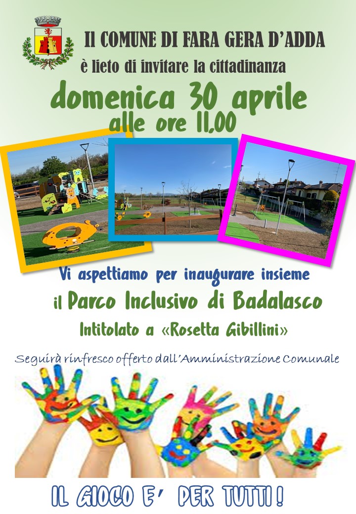 L'Amministrazione Comunale ringrazia la cittadinanza per la partecipazione all'inaugurazione del Parco Inclusivo di Badalasco intitolato a "Rosetta Gibillini"