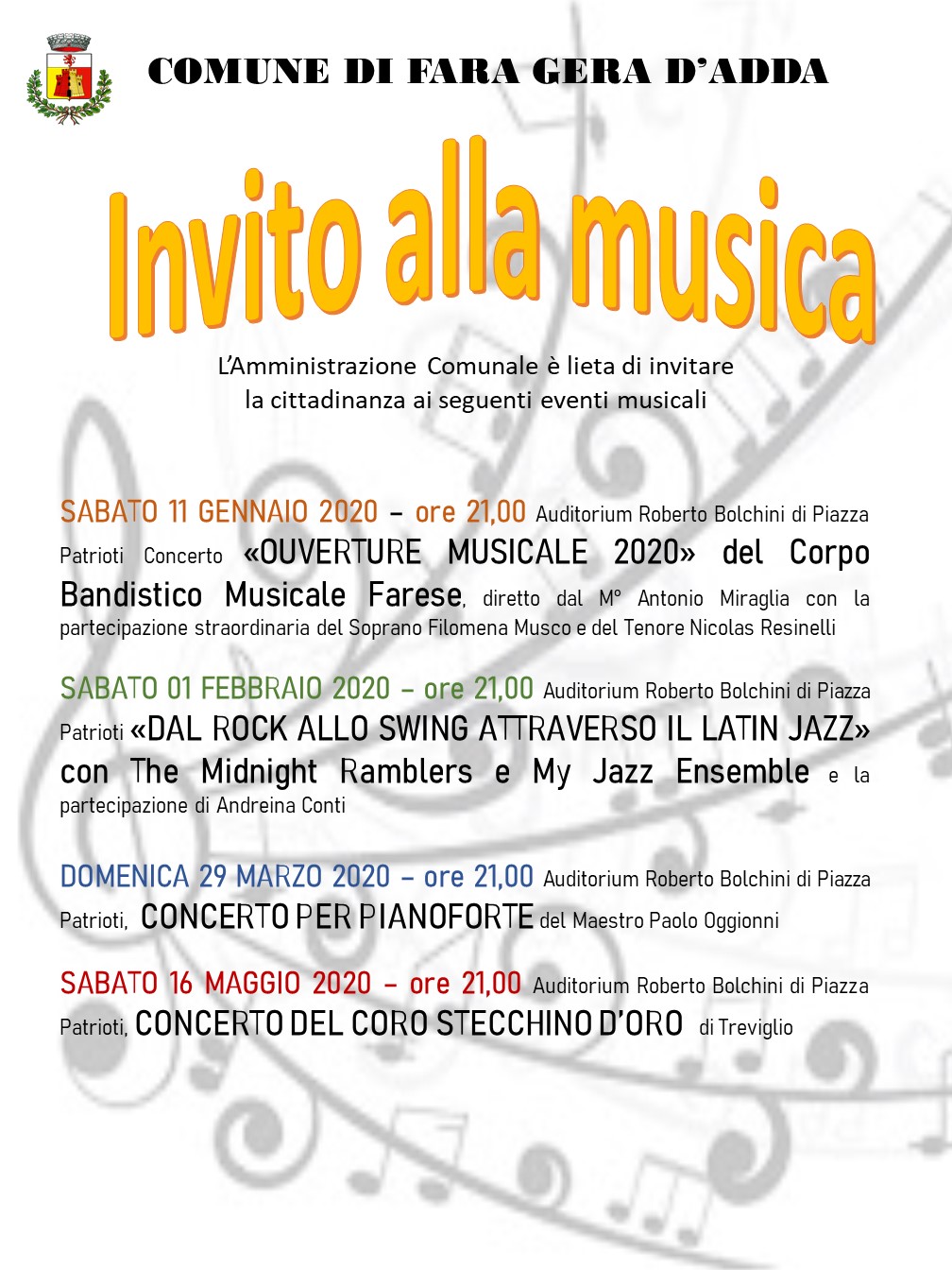 L'AMMINISTRAZIONE COMUNALE E' LIETA DI INVITARE LA CITTADINANZA AI SEGUENTI EVEMTI MUSICALI: