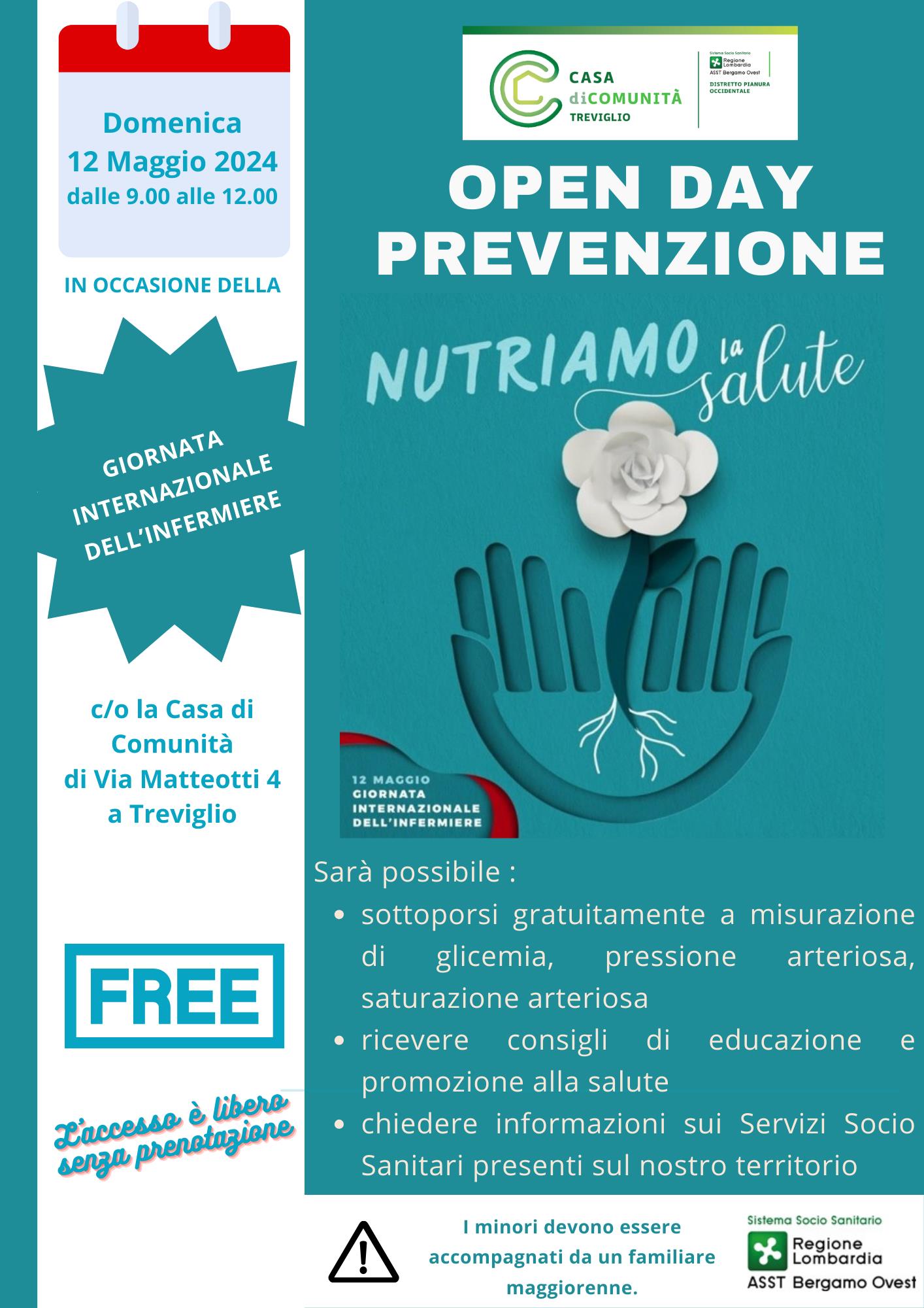 Si pubblica in allegato la locandina della giornata della prevenzione. Il giorno 12 maggio 2024 dalle ore 09:00 alle ore 12:00 presso la Casa di Comunità di via Matteotti 4 a Treviglio sarà possibile sottoporsi gratuitamente alla misurazione della glicemia, della pressione arteriosa e della saturazione arteriosa.