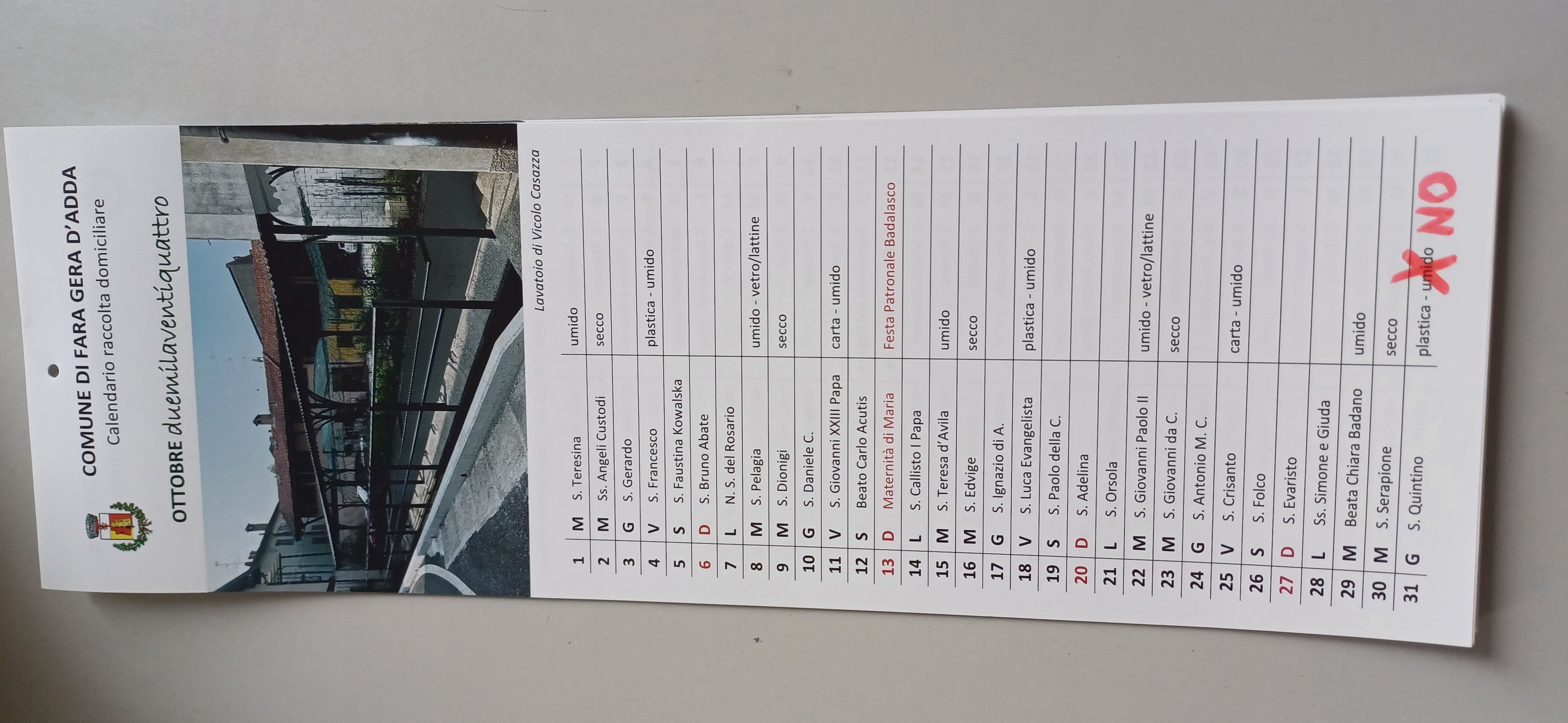 30 Ottobre 2024 Tipo articolo: Avviso Si avvisa la cittadinanza che giovedì 31/10/2024 NON SI SVOLGERA' la raccolta dell'UMIDO in variazione rispetto a quanto indicato sul calendario distribuito. VEDI ALLEGATO. CALENDARIO MESE DI OTTOBRE 2024 - modificato