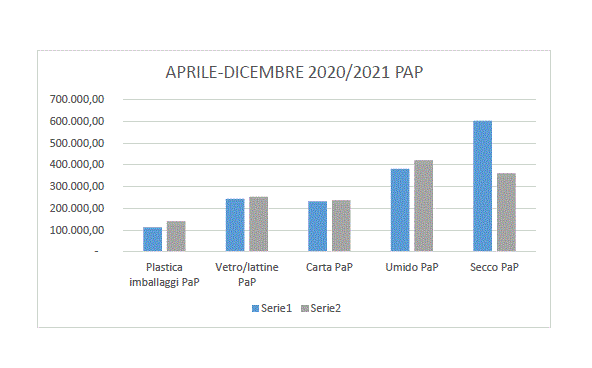 Si pubblicano i dati relativi ai quantitativi di rifiuti raccolti con sistema porta a porta nel periodo aprile-dicembre 2021 in raffronto con lo stesso periodo dell'anno 2020.
