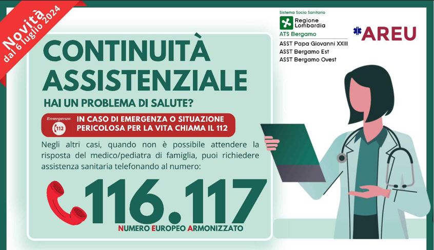 Sabato 6 luglio il territorio bergamasco vedrà l’avvio di un nuovo servizio a favore dei cittadini: la Centrale UNI.CA al n° telefonico 116117 per la gestione della Continuità Assistenziale – CA - (ex guardia medica).