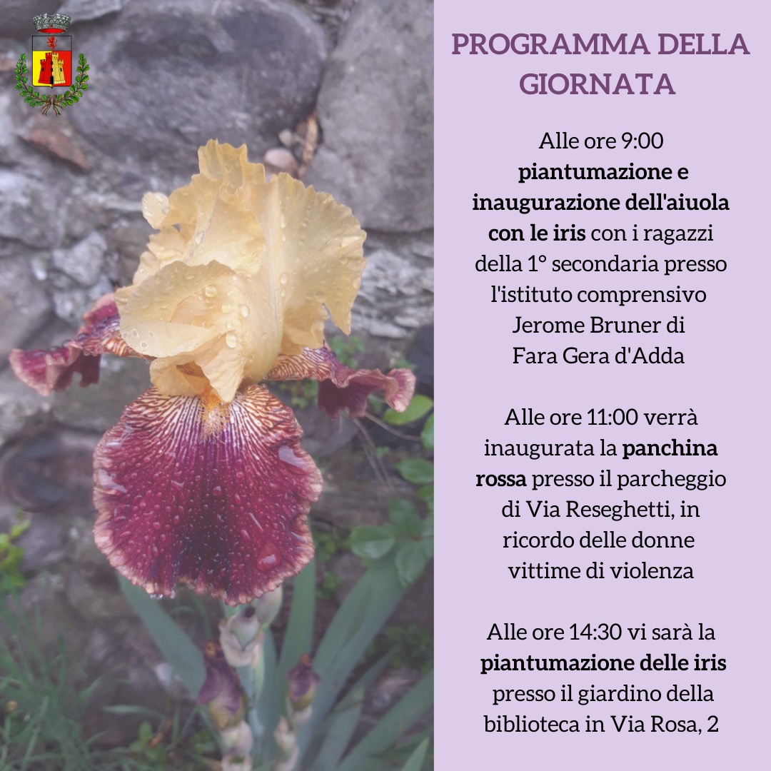 ore 9.00 piantumazione e inaugurazione dell'aiuola con le iris presso l'istituto comprensivo Jerome Bruner;