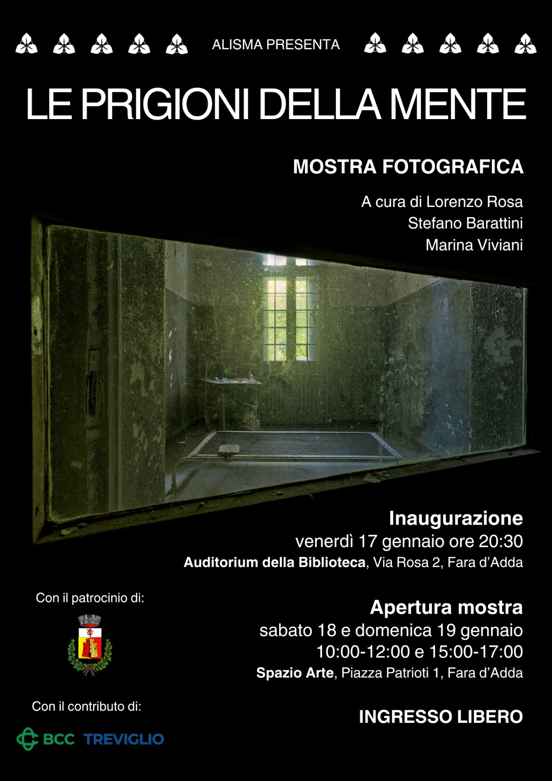 Addentrarsi in un manicomio abbandonato è come immergersi nelle profondità di un oceano oscuro e turbolento. Le pareti scrostate, macchiate da ombre evanescenti, sembrano sussurrare storie di sofferenza e di solitudine. Questa mostra fotografica ci invita a perderci in un labirinto di emozioni, dove il fascino dell'ignoto s'intreccia a quello dell'abbandono. Oltre alla documentazione storica, i fotografi ci conducono in un viaggio soggettivo attraverso i luoghi un tempo dedicati alla cura della malattia mentale, invitando lo spettatore a riflettere sulla fragilità dell'animo umano e sul valore della memoria.