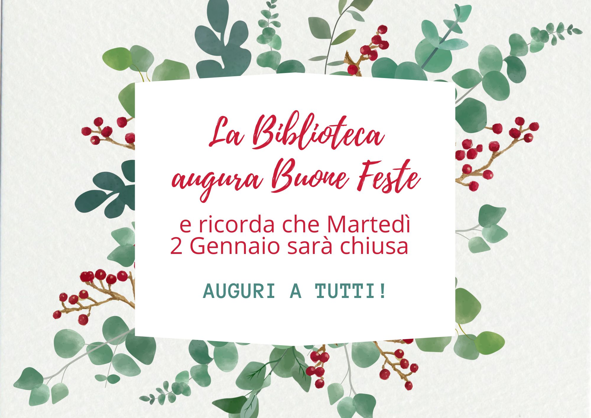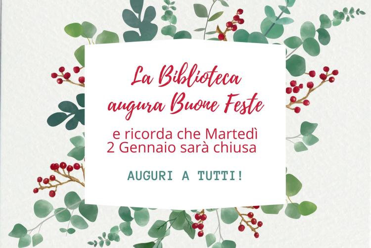 Auguri dalla Biblioteca Comunale, avvisiamo che martedì 02 gennaio 2024 saremo chiusi.
