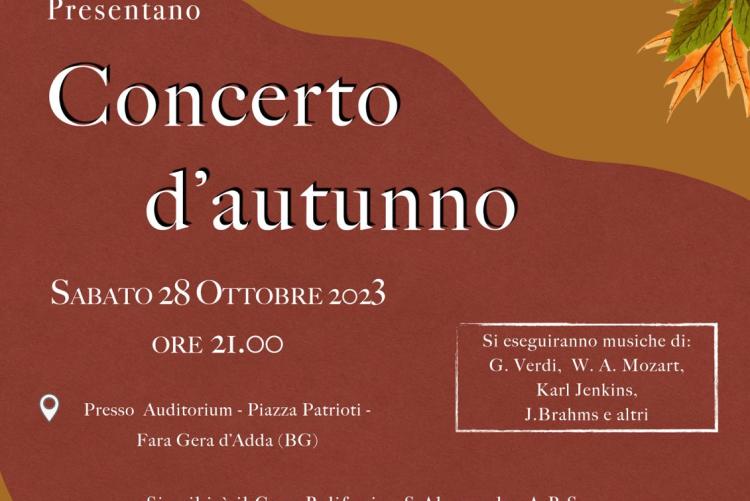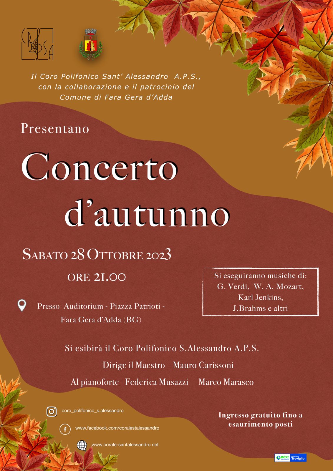 Il coro polifonico Sant'Alessandro effettuerà il concerto d'autunno sabato 28 ottobre 2023 alle ore 21.00 presso l'auditorium di Piazza Patrioti.