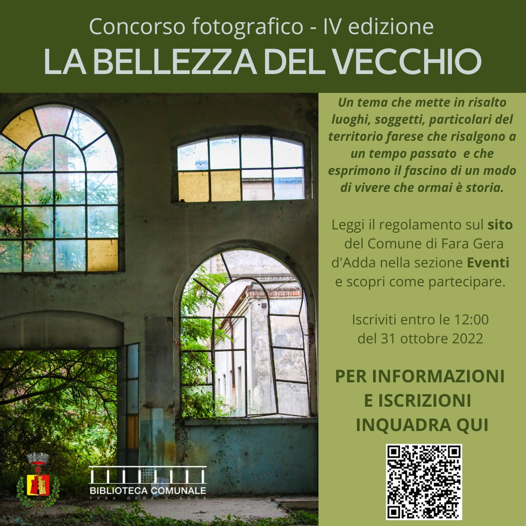 Il Comune di Fara Gera d’Adda, per il tramite del “Gruppo Cultura” organizza un concorso fotografico dal titolo “La Bellezza del Vecchio”.
