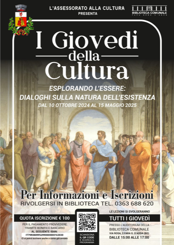 Aperte le iscrizioni per il ciclo di incontri "I Giovedì della Cultura - Esplorando l'essere: dialoghi sulla natura dell'esistenza"