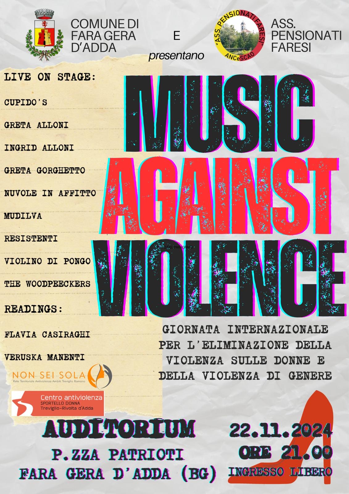 Concerto in occasione della Giornata internazionale per l'eliminazione della violenza sulle donne e della violenza di genere, con l'intervento di diversi ospiti musicali, le letture di Flavia Casiraghi e Veruska Manenti e le rappresentanti della rete "Non sei sola"