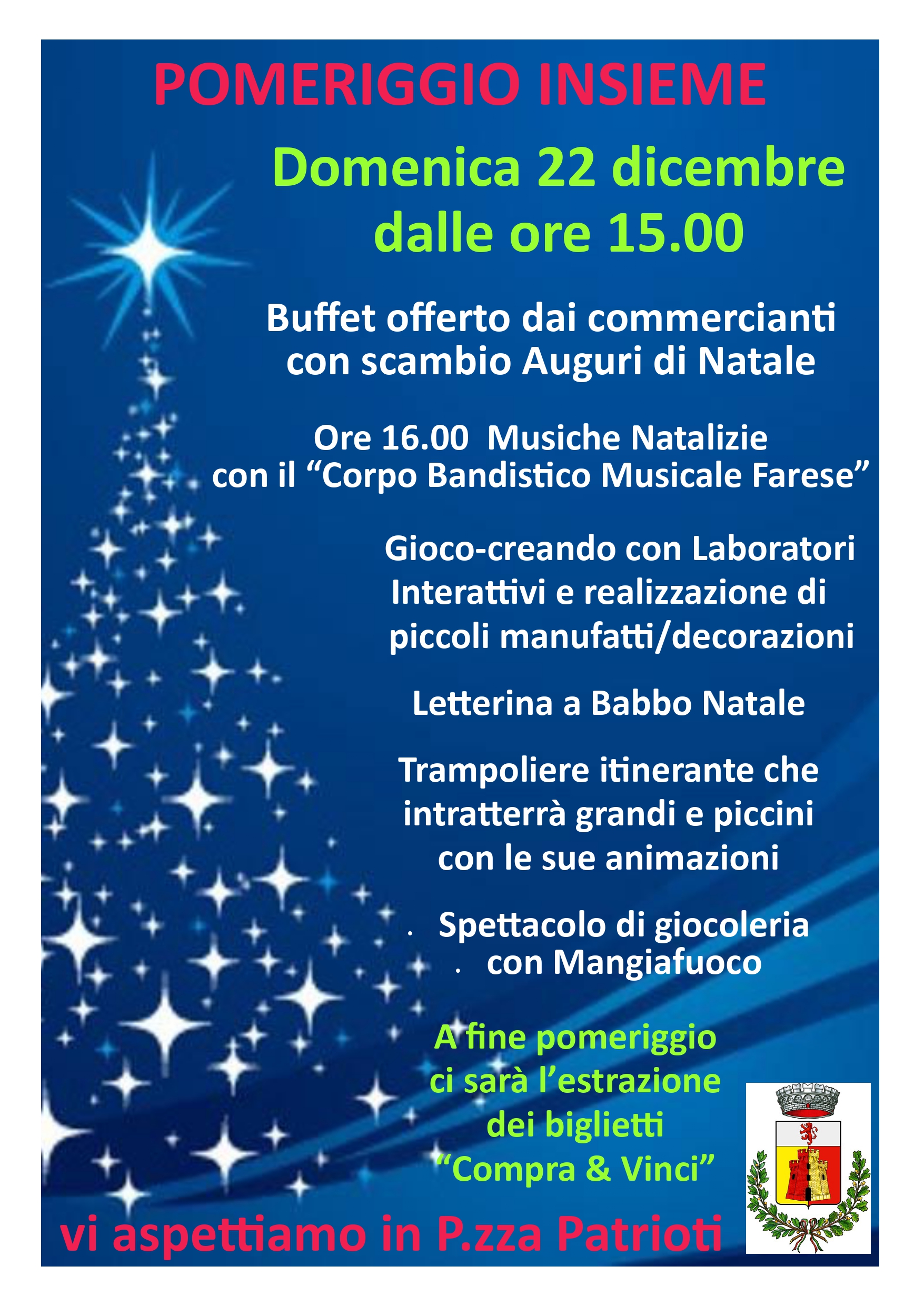 In seguito, alle ore 16, musiche natalizie con il Corpo Bandistico Musicale Farese e tante attività! (vedi allegato)