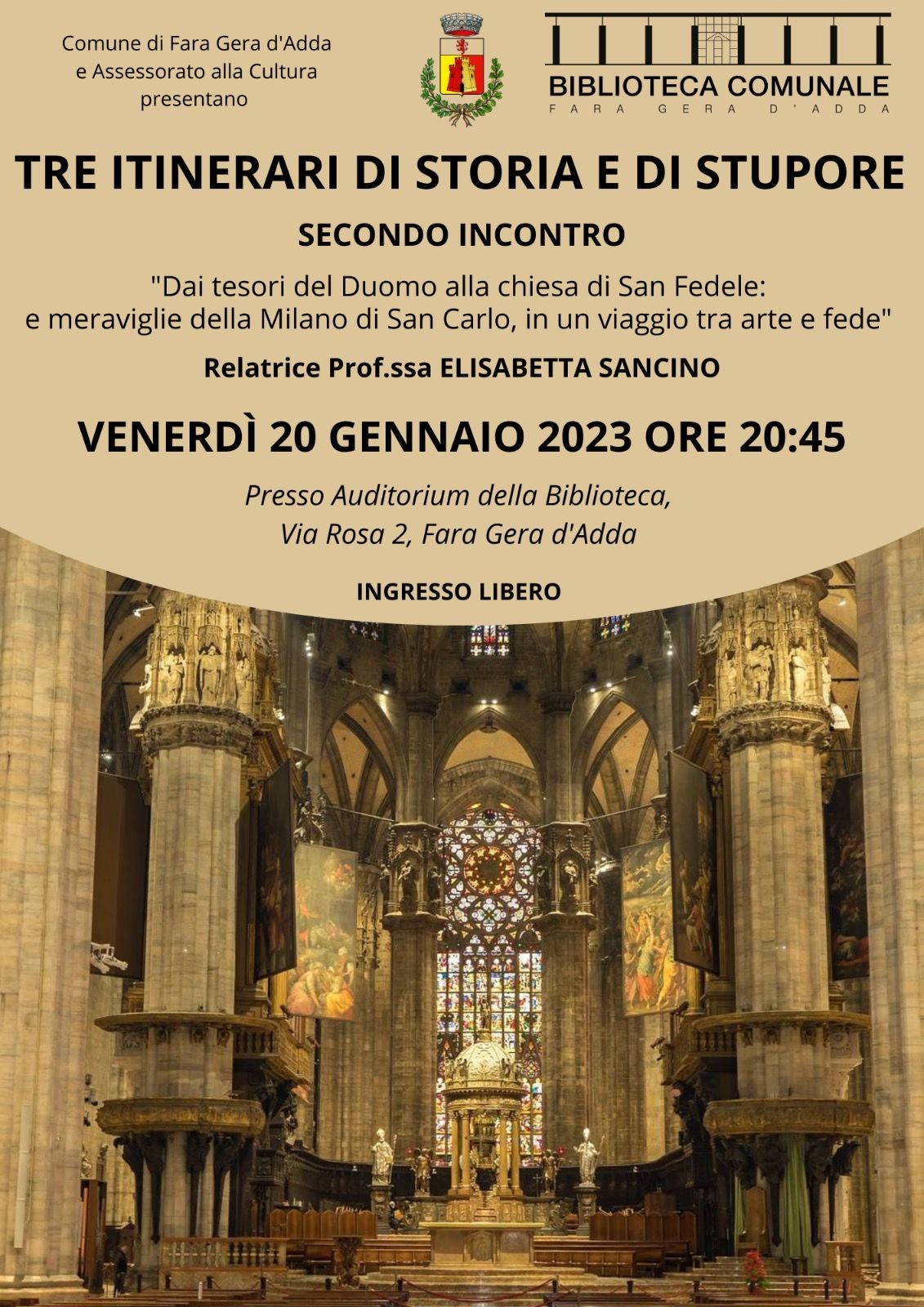 L'assessorato alla Cultura di Fara Gera d'Adda invita tutti al secondo appuntamento del ciclo di incontri dal titolo "Tre itinerari di storia e stupore" della Professoressa ELISABETTA SANCINO.