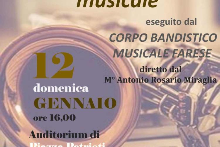 L'Amministrazione Comunale è lieta di presentare il concerto Ouverture musicale 2025, eseguito dal Corpo Bandistico Musicale farese, che avrà luogo domenica 12 gennaio alle ore 16.00 presso l'Auditorium di Piazza Patrioti.