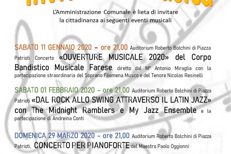 L'AMMINISTRAZIONE COMUNALE E' LIETA DI INVITARE LA CITTADINANZA AI SEGUENTI EVEMTI MUSICALI: