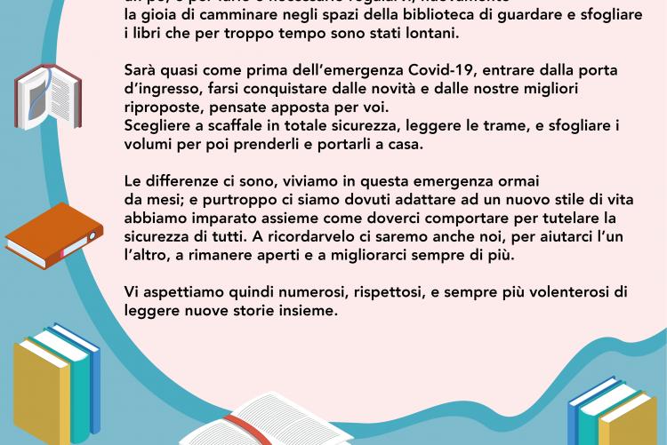 LUNEDÌ 5 OTTOBRE LA BIBLIOTECA RIAPRE LE SUE PORTE